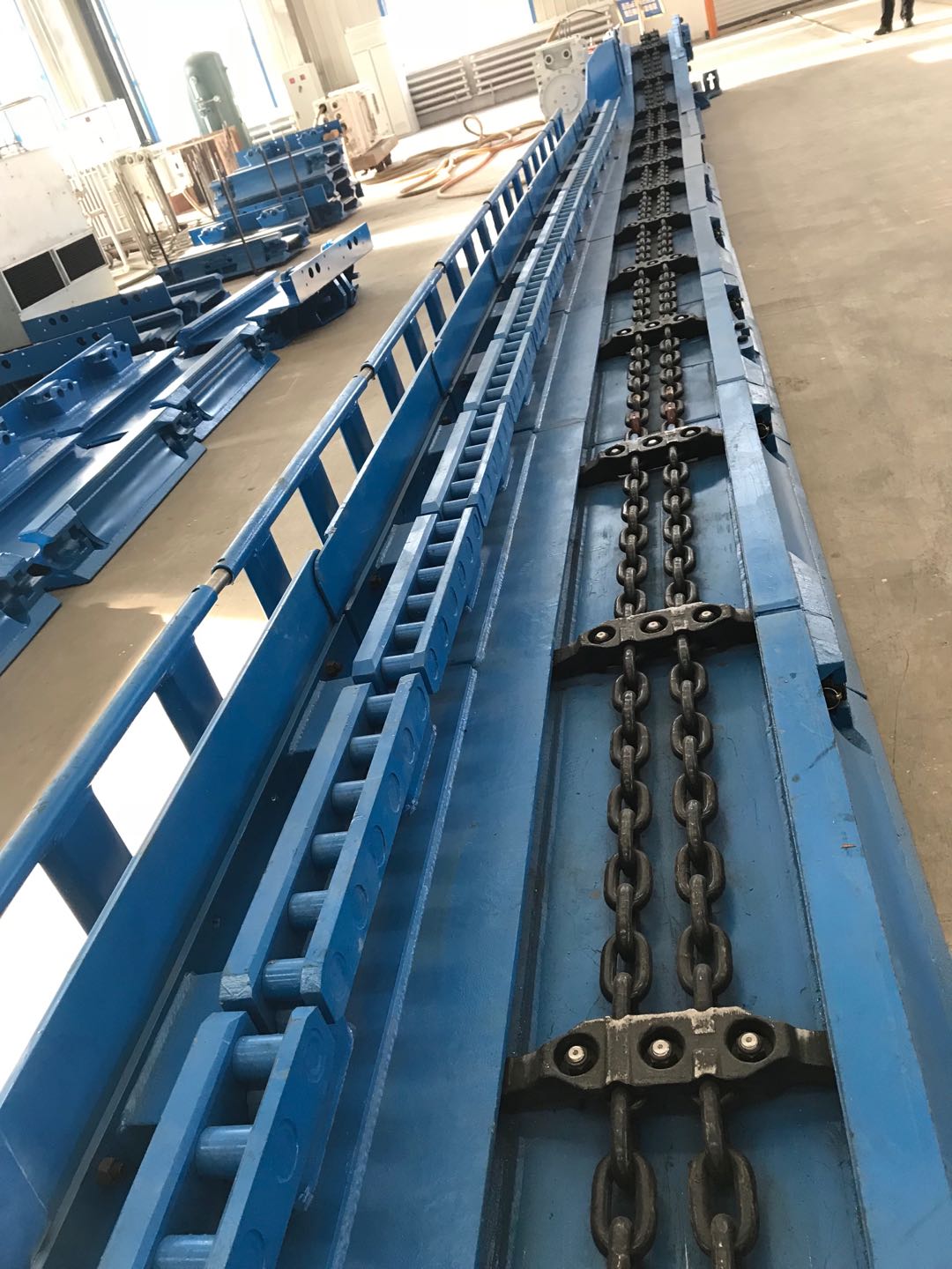 刮板輸送機可用于水平運輸,亦可用于傾斜運輸。沿傾斜向上運輸時,煤層傾角不得超過25°,向下運輸時,傾角不得超過20°,當煤層傾角較大時,應安裝防滑裝置??蓮澢伟遢斔蜋C允許在水平和垂直方向作2°~4°的彎曲。