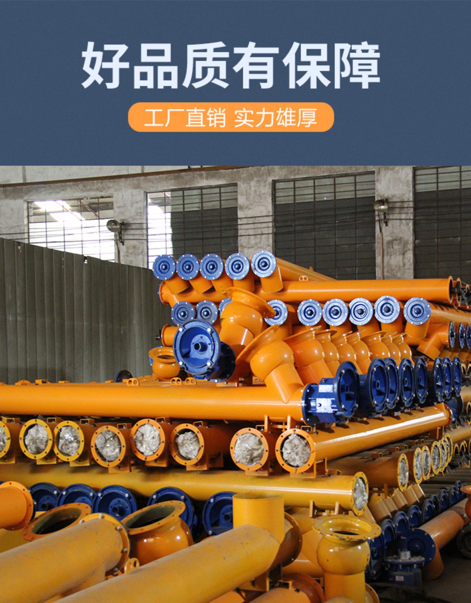 Product introduction螺旋輸送機是一種利用電機帶動螺旋回轉,推移物料以實現輸送目的的機械。它能水平、傾斜或垂直輸送,具有結構簡單、橫截面積小、密封性好、操作方便、維修容易、便于封閉運輸等優點。