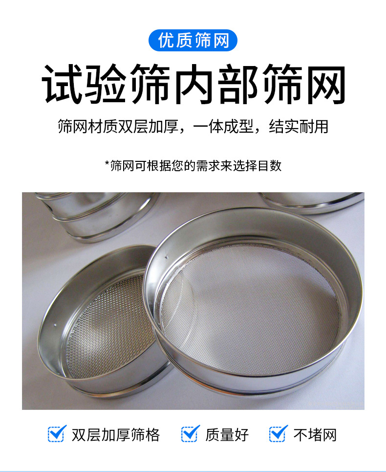 Product introduction檢驗篩又稱標準篩、檢驗分析篩、實驗篩等,是一種專門檢驗物料粒度的一種篩分設備。
