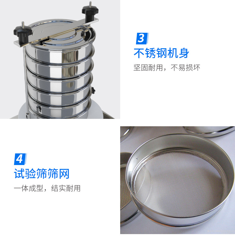 Product introduction檢驗(yàn)篩常用在實(shí)驗(yàn)室、質(zhì)檢室等檢驗(yàn)部門(mén)進(jìn)行顆粒、粉狀類(lèi)物料粒度分布測(cè)定,以及雜質(zhì)含量、液體固形物含量的測(cè)定分析。檢驗(yàn)篩的篩機(jī)和篩框都有一定的標(biāo)準(zhǔn),常說(shuō)的試驗(yàn)篩、分樣篩、分析篩、藥典篩就是它。