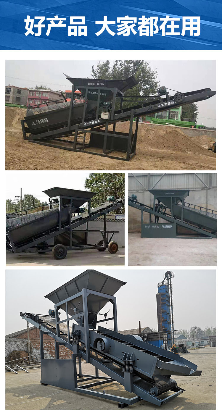 滾筒篩根據篩分物料的粒度,種類,產量的和客戶要求不同分為:重型滾筒篩,標準型滾筒篩(單層,多層,單層多段),移動式滾筒篩分一體機,移動式柴油發電選金機等。