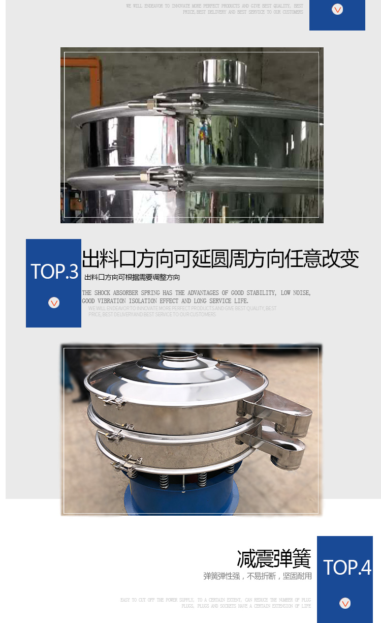 產品簡介: 面粉振動篩特點: 1.篩網先進,換網方便,清洗方便; 2.篩分精度高,面粉產量高; 3.體積小,占地面...