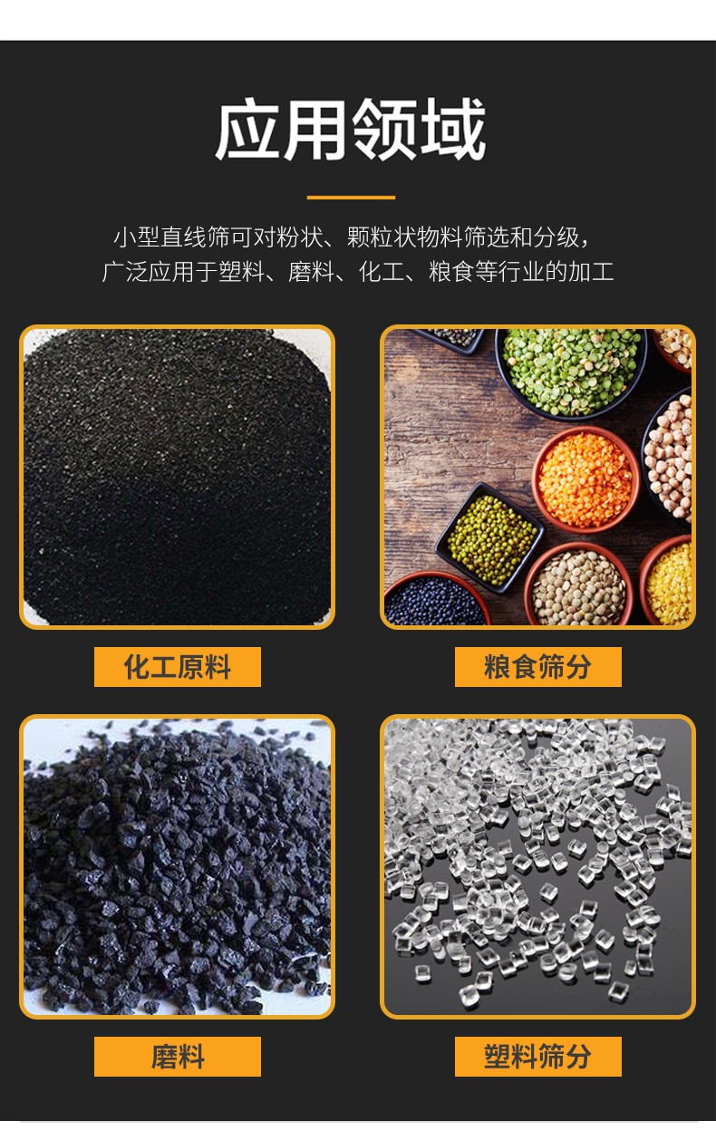直線振動篩是雙振動電機驅動,利用振動電機激振的原理。該產品篩分精度高、處理量大、結構簡單、密封性好、維修方便、可用于流水線生產中的自動化作業。適用于粒度0.74-10mm,含水小于7%,無粘性物料的任何干式物料的篩分。廣泛應用于磨料磨具原料、化工、塑料、醫藥、樹脂粉、陶瓷原料、冶金、建材、糧食、食品、化肥等行業中的干式粉狀、細顆粒狀或細微粉物料的篩分。